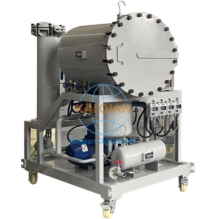 柴油凈油機(jī)針對大分子水使用的優(yōu)點(diǎn);無需加熱除水,不同的液體有著不同的表面張力,而液體流過小孔時(shí),表面張力越小,所通過的速率就越快,當(dāng)不同的混合液體流入聚結(jié)分離器后,首先進(jìn)入聚結(jié)濾芯,聚結(jié)濾芯具有多層過濾介質(zhì),其孔徑逐層遞增。由于表面張力的差異,油液快速通過濾層,而水卻緩慢得多;由于聚結(jié)濾芯采用親水性材料,微小的水滴更是吸附在濾層表面從而形成水滴的聚結(jié)。受動(dòng)力的作用,小液滴競相通過開孔,逐漸匯成大的液滴,并在重力作用下沉降而與油液分離,通過聚結(jié)濾芯后的油液,仍有尺寸較小的水珠在慣性作用下向前至分離濾芯。分離濾芯由進(jìn)口特殊的疏水材料制成,在油液通過分離濾芯時(shí),水珠被擋在分離濾芯的外面,而油液則通過分離濾芯,并從出口排出。